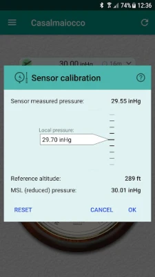 WARNING: If your device has not an integrated pressure sensor, you will only get the pressure from the nearest airport.
