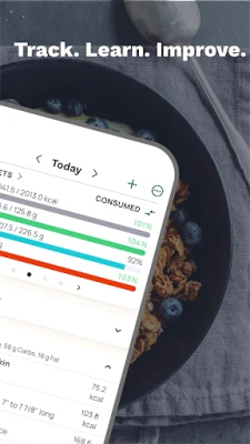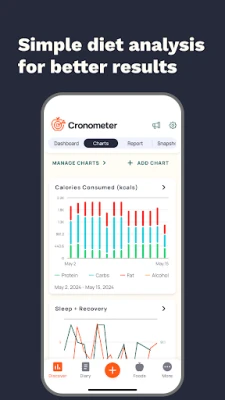 - Custom goals & charts: set precise calorie, nutrient, and macro targets