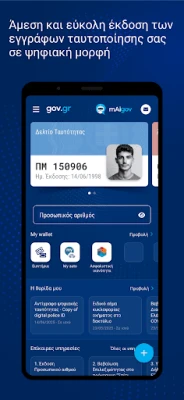 Το Gov.gr Wallet είναι η επίσημη ελληνική εφαρμογή wallet, η οποία διατίθεται μέσω του επίσημου λογαριασμού της Ελληνικής Δημοκρατίας, δίνει τη δυνατότητα δημιουργίας, αποθήκευσης και ελέγχου των νέων ψηφιακών δελτίων ταυτότητας και ψηφιακών αδειών οδήγησης.