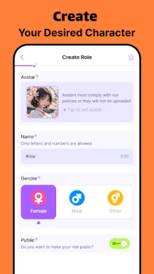 Warning: Some characters may generate explicit content. This app is for entertainment only and should not replace interpersonal interactions and relationships in real life.