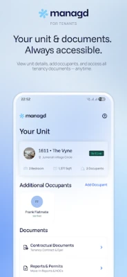 • Unit details & documents: Occupant information, contracts, and permits at a glance.