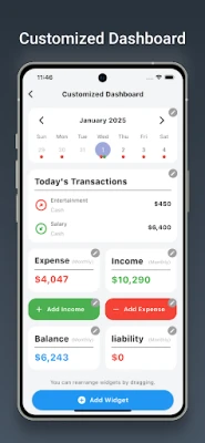 • Customizable Dashboard: Personalize your dashboard by adding, removing, or rearranging widgets to suit your unique financial needs.