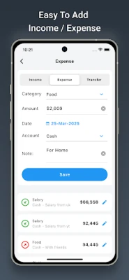 • Income & Expense Tracking: Add your income and expenses with just one tap—quick and easy!