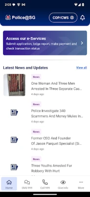 Police@SG is an initiative by the Singapore Police Force, which gives you access to useful information on the go. With Police@SG, you will have the following services at your fingertips: