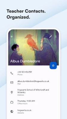 Save your teachers’ contact info and organize their phone numbers, office hours and email addresses.