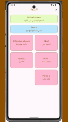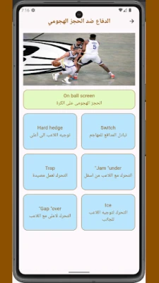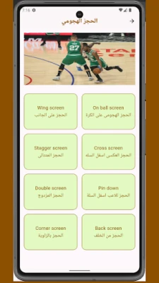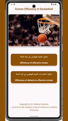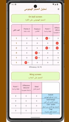 The application includes the types of offensive screen most used in basketball games. It is possible to see reports on each type of offensive screen, as well as to see types of defenses on offensive screen after or during analysis, and to know the number of repetitions of using different types of offensive screen and defending them, as well as the percentage of efficiency of each type.