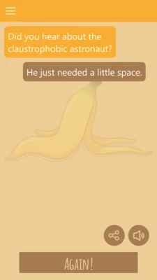 Whether you are alone at home or in the company of friends, "Tell me a joke!" will be your ideal partner to create a light and joyful atmosphere. Just launch the app and select your favorite category from a huge collection of classic, humorous, or even the latest jokes. The app will then offer you a cleverly chosen joke, and thanks to its text-to-speech feature, it will read it aloud, adding a touch of humor to your experience.