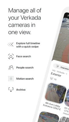 With the Verkada mobile app, you can access all your Verkada cameras in a single view, and your entire cloud-based footage history is just a swipe away. With industry-redefining tech, Verkada enables you to quickly filter and identify individuals, and track them across your organization's cameras. The future of enterprise security is in your hands.
