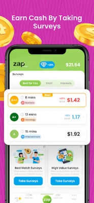 Take surveys, share your opinion and earn rewards by downloading Zap Surveys today!